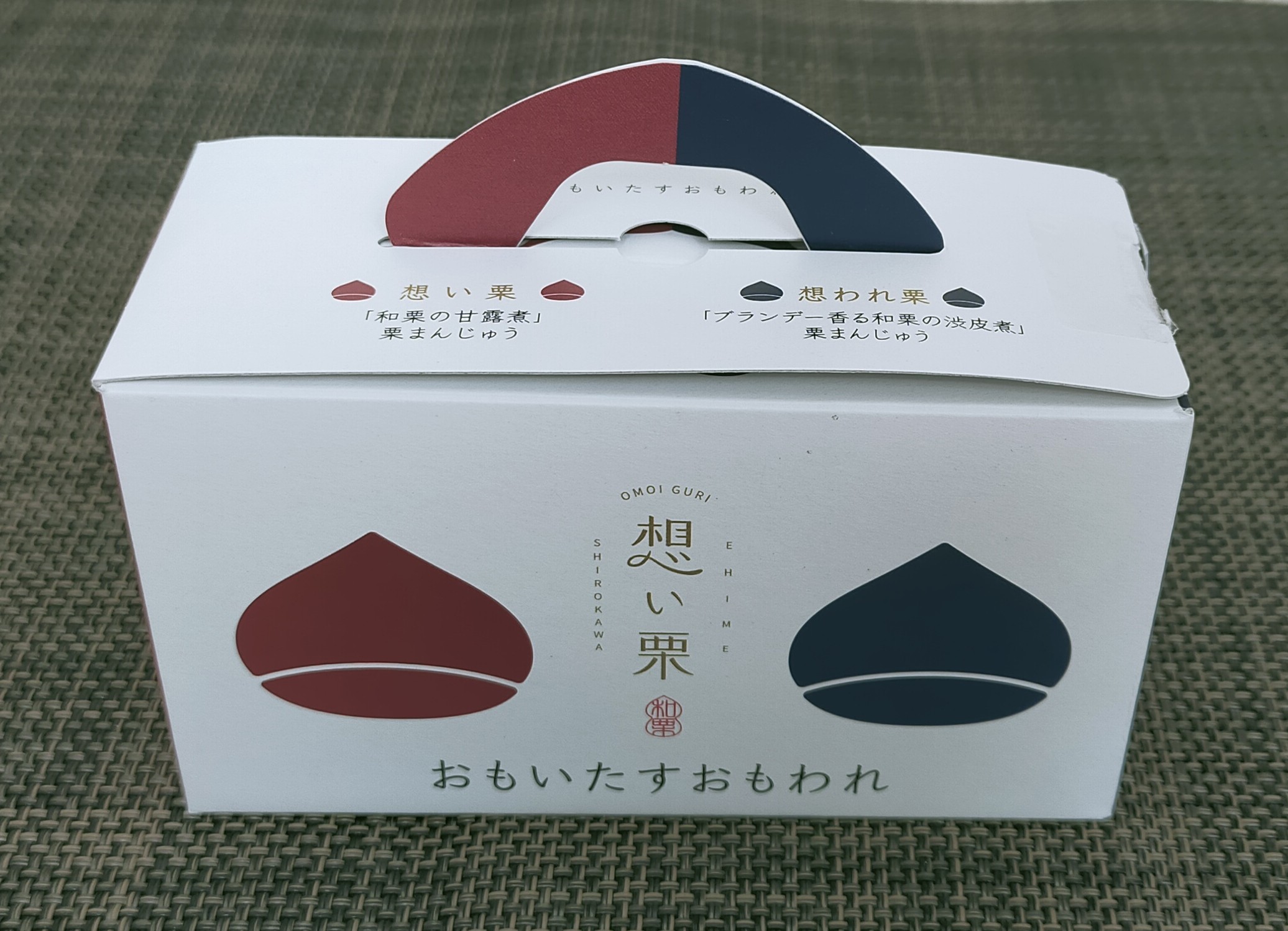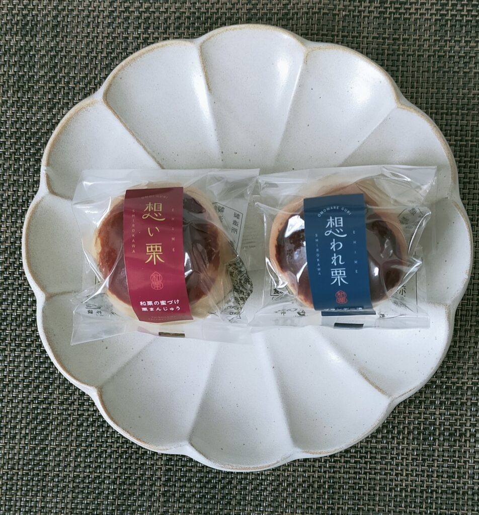 松山出張のお土産は、『想い栗・想われ栗』の栗まんじゅうです。